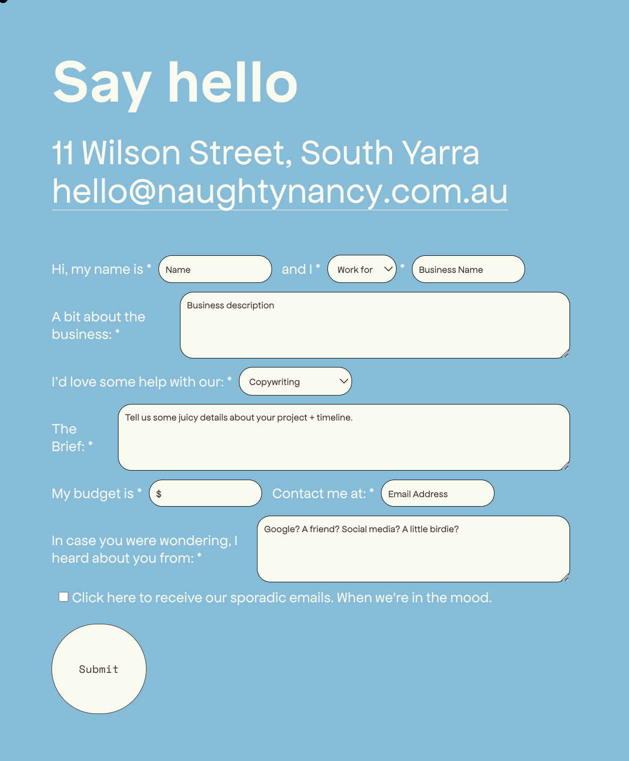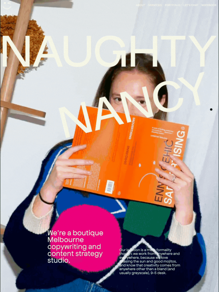 The cool people at Naughty Nancy were after a website revamp. Founder & Director Daniella had recently had their branding redone. It looked incredible, but their original website no longer reflected who they were (very fun) or where they were heading (flying into epic territory – BYO rocket fuel). As creative copywriters and content experts, they wanted their site to have a fresh face – and they definitely had the design palette to make it happen. As most of their existing clients are fun, bubbly brands with a strong TOV and solid brand presence both locally and internationally, the website needed to speak to those clients and align with their vibe.